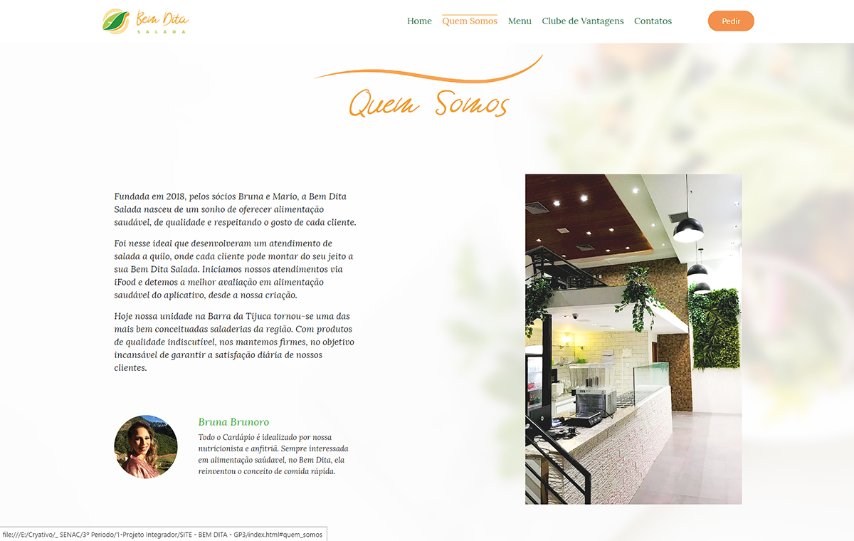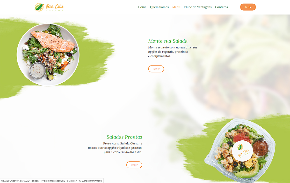 Site criado para o Bem Dita Salada, um restaurante na Barra que possui uma proposta interessante, unindo alimentação saudável à comida rápida.