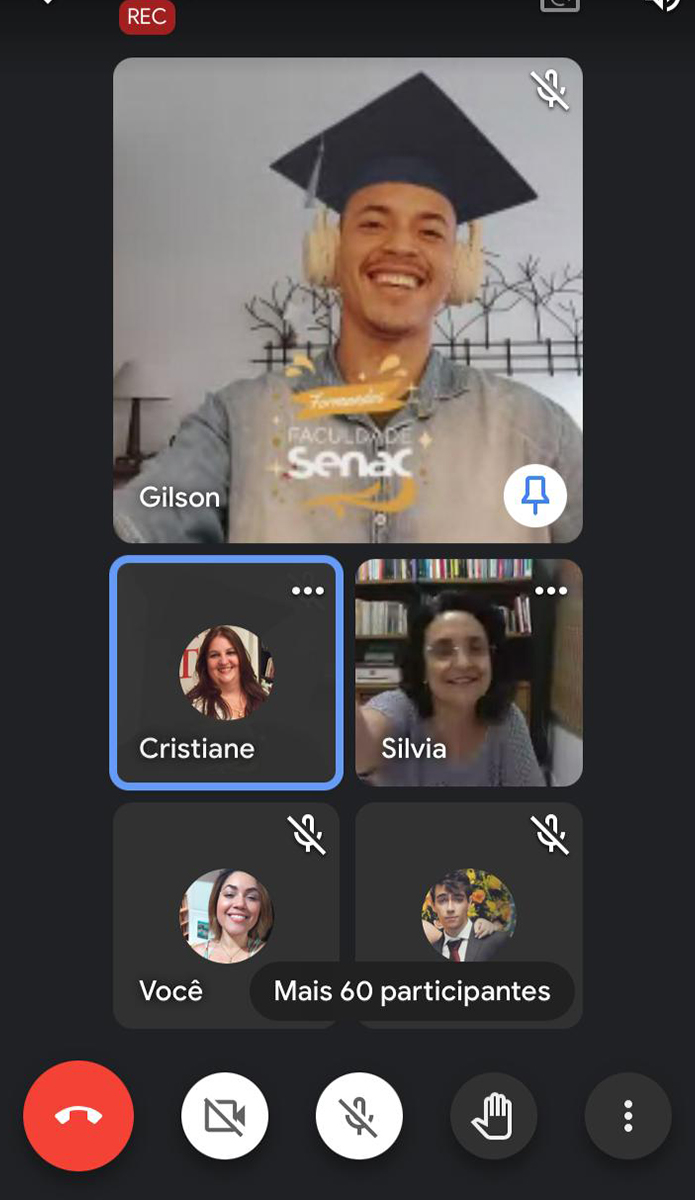 A formatura foi incrível, uma linda videoconferência com mais de 40 formandos e seus capelos virtuais. ✨